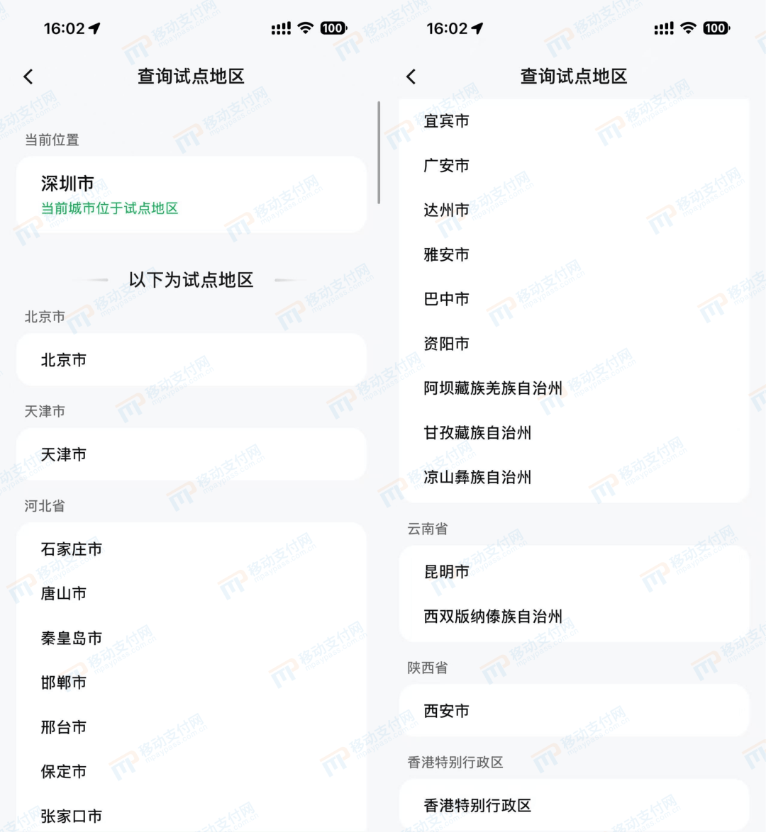 除此之外,移动支付网注意到,数字人民币App 2.0版本在其他界面也有更新优化。例如,在钱包类型说明中,可查询具体的试点地区,其列出了境内17个省市区的26个地区,5个全省试点的省份还具体列出了所有的地级市,同时境外的香港特别行政区也出现在列表中。