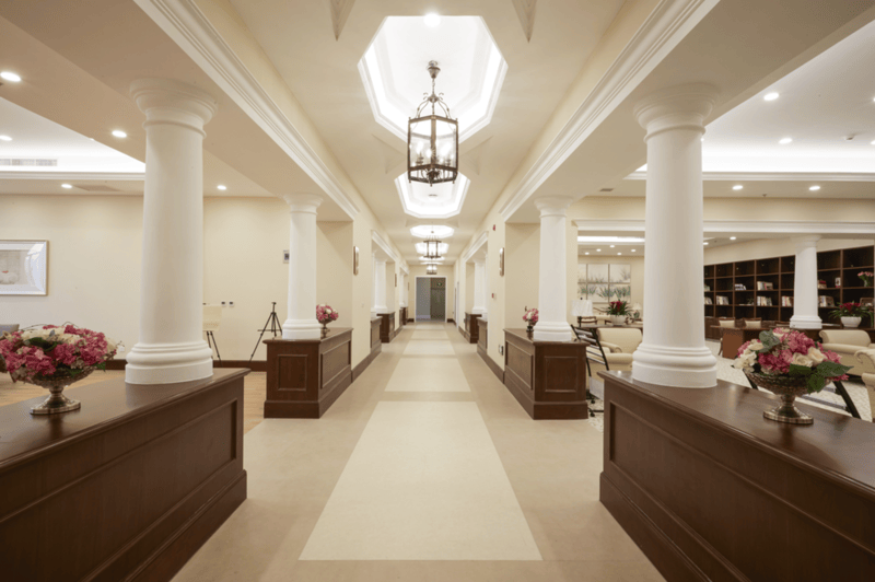 生活与文娱配套全方位覆盖长者日常需求。生活方面,爨珍堂宜老餐厅、长春园水上餐厅由高级厨师掌勺,一日三餐科学配餐,兼顾营养与老年饮食习惯;瀹茗台茶楼、老年用品便利店、理发室满足日常消遣与购物需求,银行、保险等服务性单位进驻,让长者足不出园即可办理各类业务。文娱领域,球类活动室、棋牌活动室、经典影片放映室、卡拉OK欢唱室等一应俱全,图书阅览室、舞蹈练功房、书法绘画室等为长者提供多元兴趣平台,丰富精神文化生活。康体配套更具亮点,健身房、室内恒温泳池、洗浴中心、足疗按摩、SPA等设施,助力长者保持健康体态。