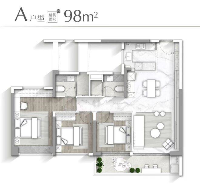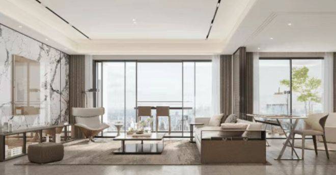 206㎡大平层定位高端改善,一层仅三户设计,每户独立电梯厅,私密性极高。南北对流格局,南向阳台长约9.3米,视野开阔,尤其是部分楼栋直面长隆欢乐世界,推窗就是主题乐园景致,度假氛围浓厚。双主卧套房布局,主人的尊贵感和舒适度都很到位。