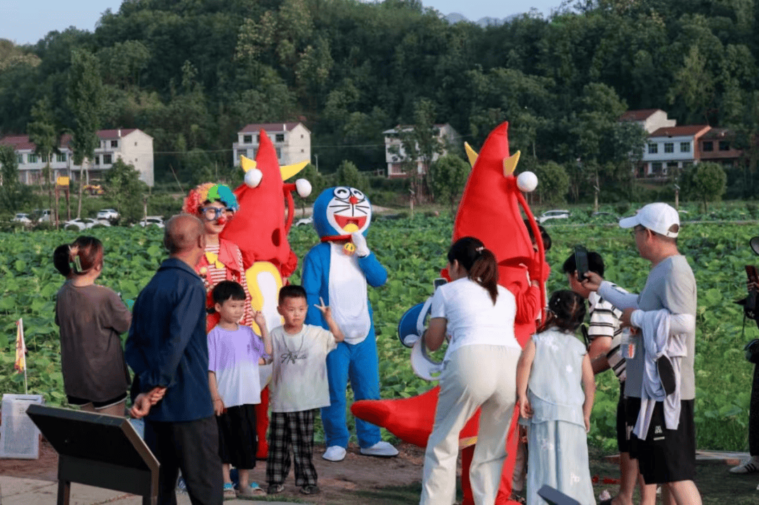 活动内容:开展哪吒系列游园互动见面会、哪吒系列游园互动见面会、滑稽小丑互动、小龙虾、青蛙王子互动、不倒翁小姐姐互动等活动,吸引游客前往千亩荷塘游玩赏花。